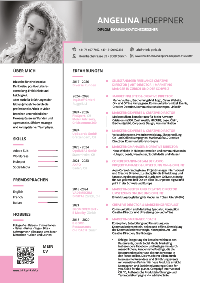 Kompetent, kreativ, fundiert: ungewöhnlich vielfältig und arbeitet auf allen Ebenen: Marketing, Gestaltung, Social Media. Meine Homepage kriegt viele Komplimente. Ich arbeite seit Jahren sehr, sehr gerne mit ThinkPink zusammen: